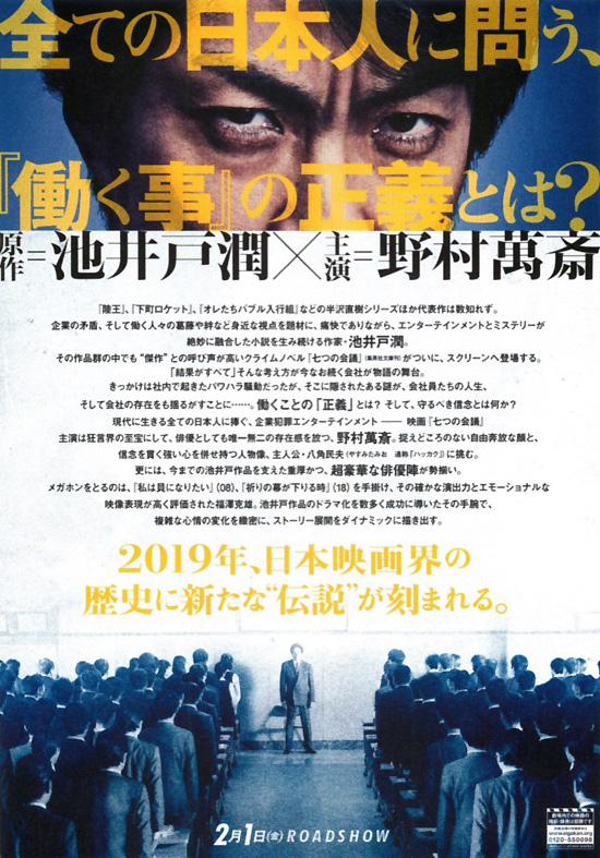 | 今日は「七つの会議」を観ました。それなりにリアル感があって、ストーリーもわかりやすく、善悪もはっきりしていて、2時間があっという間でした。隠蔽に立ち向かう八角が元妻にその決意を伝え、それを元妻が後押しする場面はジーンときました。八角が最後のシーンで言っていたように、日本はお家大事が最優先、そうすることによってお家が自分を守ってくれるという意識に知らず知らずに染まっているのかもしれません。「悪いことは悪い」「命より大事なものはない」を繰り返し言っていくしかないという八角の言葉を忘れないようにしないといけませんね。私の会社生活は、どちらかというとその正論が通っていた(最近、グループ内企業でのデータ偽装が続いていますが)と思えたので、業務負荷を除いてはストレスなく働けたのは幸せだったと思います。非常に楽しめる良い映画でした。 |