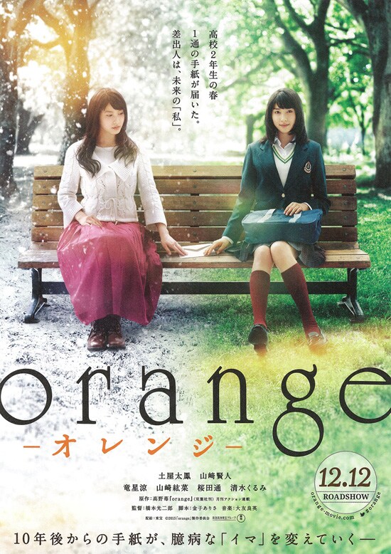 | 今年観た映画60作目は「orange-オレンジ-」。コミックの実写化ですが、この映画はとてもとても良かったです。泣いてしまうシーン満載で感動的な映画でした。未来からの手紙という要素が気になって選んで観たのですが、単なる学園モノとSFっぽい話を絡めただけかもと思っていましたが、初々しい菜穂と翔の恋心、翔の悩みを察することができず命を救えなかったと後悔する菜穂、お互いのことを信じて助け合う6人の友達、母を死に追いつめたと後悔する息子、が巧みに絡み合っていてとてもいいストーリーでした。演じる俳優も、菜穂役の土屋太鳳は可愛さだけでなく芯のあるしっかりさが出していたし、須和役の竜星涼はとても優しくいい男だったし、翔役の山崎賢人は悩みを持つ繊細な感じがよく出ていたし、その他の3人の友人もとてもいい奴でした。何度も観てみたくなる映画でした。なお、タイトルの「orange-オレンジ-」は、ラストシーンのパラレルワールドでそれぞれが見ている美しい夕日の色を表しているとのことです。 |