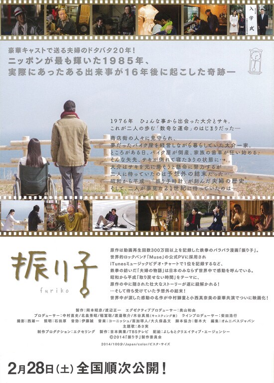 | 最初は大介があまりにもダメ男で、大介とサキの夫婦関係やサキの脳梗塞で倒れた状況にもまったく気持ちが入らなくて、冷静に淡々と観ていたのですが、1985年の未来博でサキの書いた手紙を娘の心晴が読むあたりから一気に感情が入ってしまい、そのあたりから涙が溢れてしまいました。それに合わせて、なぜ2000年正月の結婚式のシーンが準備段階のあと無かったのだろうかという疑問が解き明かされて、そうだったのかと重ねて涙してしまいました。原作である鉄拳のパラパラ絵とは異なる展開でした。夫婦が死ぬときにこの人と結婚して良かったと思える行動をしてきたのかという自分にも置き換えていろいろと考えてしまいました。八百屋の橋本が大介に言った、「後悔を取り戻そうと考えるな。今から後悔しない(タイムマシンのいらない)生き方をしていけ。」という言葉が身に沁みました。今、自分が子育てで後悔することが多く、過去に戻れるならと思って落ち込んでしまうのですが、犯してしまった後悔は考えても取り返しはつかないので、これから後悔しない生き方を考えていくしかないですね。過去にいろいろと失敗や後悔があっても、鉄拳のパラパラ絵の最後のように、夫婦や親子が穏やかに歳を重ねていくことが大事なのでしょうね。 |