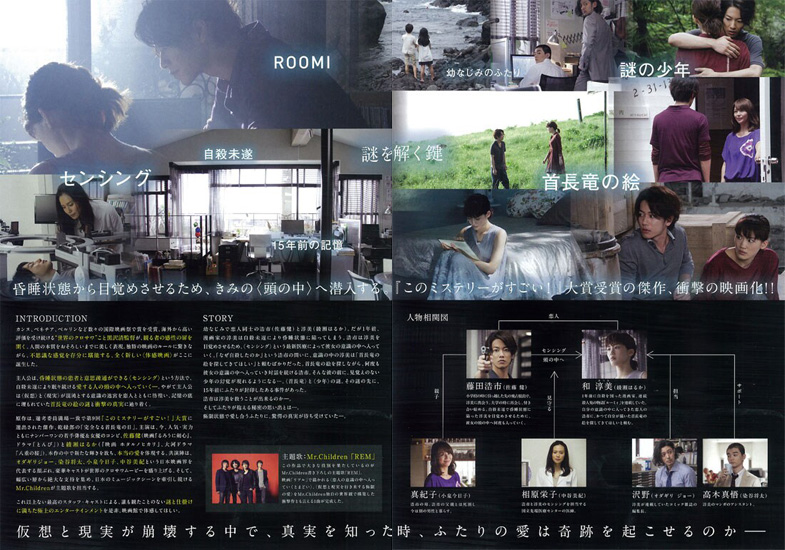 | 主役級の俳優を少しだけ使ったり贅沢なキャストです。映画はなかなか難しくてすべて理解が追い付かない映画でした。何がリアルで何がバーチャルなのかわからない感じで描かれるので、最初から浩市のリアルが実はリアルではないのだろうということを推測しながら観ていました。そこに首長竜の絵の話が唐突に出てきており、首長竜が何を意味し表現しているのか最後までとてもわかりにくかったです。原作ではこの首長竜がもう少し必要性を持ったものに関連付けられているようですが、映画では浩市にとって淳美にとって首長竜がどういう意味を持っているのかが私にはわかりにくかったです。この映画はDVDレンタル店では「邦画ラブロマンス」にジャンル分けされていましたが、内容的にはラブロマンスという感じではなく、どっちかというとサスペンスがホラー(というほどではないですが)っぽい感じで、最後まで少し不気味な感じが付きまといました。浩市と淳美のふたりの関係も謎解きっぽいので、深い愛情や優しさもあまり感じるところがなかったので、あたたかい感じや感動もありませんでした。ここ数作、私の好みからいうと少し期待外れの映画が続いてしまいました。 |