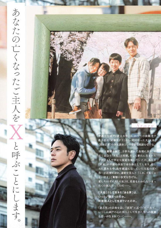 城戸章良:妻夫木聡 / 谷口里枝:安藤サクラ / 谷口大祐・X(ある男):窪田正孝