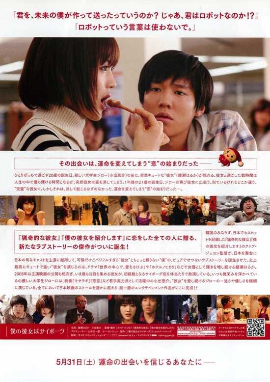 | 昨日から気分が落ち込んでいるので、軽く楽しめる映画を観ようと思ってこの映画を観ました。ストーリーは悪くはないし、綾瀬はるかは素敵だし、そこはいいのですが、私が気になったのは小出恵介の演技でした。感情が表面上だけで心の中は異なっているような気がして、そこが気になってしまった感じでした。2007年11月22日の一日だけの彼女と、2008年11月22日から共にする彼女の違いや関係がどうなっているのかと考えながら観ていて、そうか2008年に初めて来た彼女が人間味を身につけて、あらためて一年前の2007年にも来たのかと断定して観ていたら、その想像は見事に裏切られました。そうか、2007年の彼女がやけに人間的だったし、ワインを飲んでもおかしくならなかったのはそういうことだったのねと納得できました。そしてその彼女が再度大地震の時にやってきて、そのあとの結末は、そうかよかったなと思わせるものでした。この映画では、過去を変えても未来はその過去の数だけ複数あるという考え方をとっているので、平気で未来から来て過去を変えてしまっています。そこはこだわらずに見る必要があります。ただ、細部で納得できない(わからなかった)ところもあります。2007年に来た時に彼女が見た誕生日の祝い方が、なぜ2008年の彼女が知っていたのか?未来の人間の彼女が記憶を移しただけで、過去の人間であるジローと人生を共にするのかという点です。それと、無銭飲食や人のものを食べるなどのシーンが多いですが、やはり日本を設定するなら気にはなりました。いろいろありますが、この映画は綾瀬はるかの魅力を楽しむというところが一番のような気がします。 |