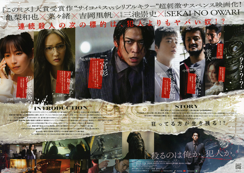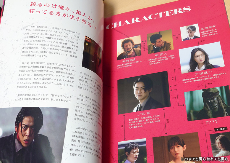 | 公開前から気になっていた「怪物の木こり」を長女とふたりで観てきました。期待以上、とても楽しめました。サイコパスが実は生まれながらのものではなかったということ、脳泥棒と呼ばれる連続殺人事件のそれにからむ悲しく切ない結末、最後までどうなるのか予測がつかない秀逸なストーリーでした。亀梨和也は二宮の役柄にぴったりで、何を考えているかわからなくて奥深くにある残酷さを見事に表現していて魅力的でした。連続殺人事件を追うプロファイラーの菜々緒も、二宮の恋人役の吉岡里帆も良かったです。本当は優しい普通の人間だったのに強制的にサイコパスに仕立てられ、あるきっかけでその呪縛(効果)から解けた時の自分のやったことへの絶望感、それがラスト前の二宮と意外な人物だった怪物の会話で切なく強烈に心に響いて伝わってきて、涙があふれてしまいました。本当の自分を取り戻し、サイコパスを殺し絶望で命を落とすことを選んだ怪物と、絶望の中でも婚約者を守って生きていくと決めた二宮、どちらもつらく悲しい選択です。しかし、本当のラストでさらに悲しい結末・・・、そこでサイコパスに戻ってしまったのかと思わせる二宮の行動は実は最後の映美に対する優しさと謝罪だったというのもまた悲しすぎました。私はこの泣ける結末に大満足でしたが、一緒に観た長女は二宮は最後はまたサイコパスに戻ったほうが面白かったかもと言っていました。ホラー好き、怖いもの好きな長女らしいです。それにしても、人間の感情というのは、何が"普通"なのでしょうね。そういうことも考えさせられる内容でした。本当に見ごたえのあるストーリーとキャストでとても面白い映画でした。なお、「怪物の木こり」のパンフレットは数日前から品切れ中になっていたのですが、映画を観終わって出てきたら入荷となっていて本当にグッドタイミングで入手できました。昨日観に来る予定を体調不良のために今日にして良かったです。入場者特典は、パンフレットと同じ写真のポスターでした。 |