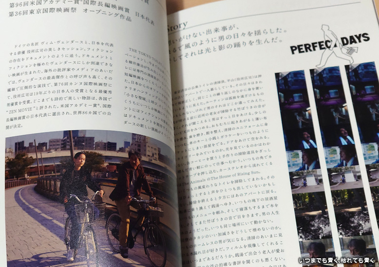 DAY」が乱れます。一緒に観た長女も、あれはあれでとても幸せそうだと言っていました。平山が姪に、「妹とは違う世界を生きている」と話す場面がありますが、人それぞれに異なる自分の生き方の世界があるのだろうと思います。その時に言う、「いつかはいつか、今は今」という言葉も、今が一番大事なのだという考えが出ているように思いました。もっともっと平山の生活を眺めていたい、そう思わせてくれる映画でした。その中から、人の幸せとは何かを感じればいいのかなと思いました。なお、父親との確執の理由とか、神社で昼食をとる女性とか、ホームレスの男とか、休日しか腕時計をつけないとか、アヤのキスとか、そういうところは謎のままです。見る側の感じ方に任せているような気がします。そういう味わいのあるいい映画でした。なお、一瞬登場する老婆、研ナオコっぽいなと思ったら、パンフレットに研ナオコとクレジットされていました。 |