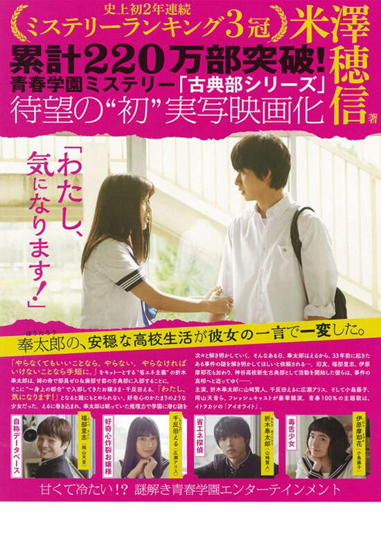 折木奉太郎:山崎賢人 / 千反田える:広瀬アリス / 伊原摩耶花:小島藤子