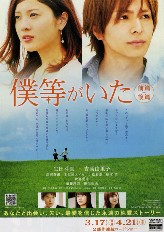 | 前篇と後篇の4時間を一気に観ました。この映画はとても良かったです。自分が手を離したために元恋人が命を落としてしまったという後悔を持ち続けて忘れられない矢野。その矢野に心惹かれていく高橋。その二人を高橋への恋心を抑えて矢野と高橋のために奔走する竹内。姉への屈折した思いと矢野への思いの中で苦しむ矢野の元恋人の妹の山本。この4人の切ない物語です。前篇は、4人の高校2年の頃の矢野と高橋が惹かれ合っていく時間が描かれ、後編は、それから数年後の社会人になった頃の時間を、それまでの経緯を並行しながら描かれていきます。後篇は、幸せそうな高校生の恋愛から一転して、矢野の母との苦労や苦悩に胸が苦しくなります。普通だったらやけになって投げ出すところを、矢野は、自分が元恋人や母の命を絶ってしまった責任を背負って、高橋に心配や迷惑をかけないように音信を断ちます。高橋は、心揺れながらも最後まで矢野への思いを貫き通す決心をします。登場人物の悩める心情すべてが理解できるがゆえに、とても切ない内容でした。誰も根っからの悪い人はいなくて、最後は好きな人や親のことを思い、自立をして前を向いて歩きだすことで、最後はみんな頑張れとエールをみんなに送りたくなるとてもいいラストでした。大切な人には正直に自分の気持は伝える、つらい後悔をしないように生きる、そんなことを改めて感じさせてくれました。自分がどういう状況であっても、大切な人の気持ちを考えて行動をしなければと思いました。なお、この映画で、短い時間ですが吉高由里子と柄本佑がからむシーンがあります。12年後にまさか大河ドラマでW主演級の共演となるとは、この時は本人たち含めて誰も思わなかったでしょうね。 |