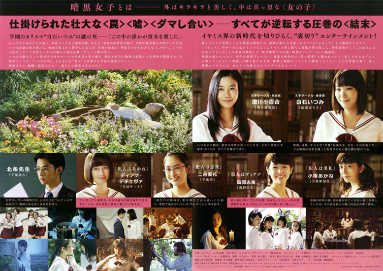 物語は、聖母マリア女子高等学院で起きたいつみの死に対して、文学サークルの定期朗読会においてサークル会長である小百合が主となって、それぞれメンバーが書いた「いつみの死」をテーマにした小説でいつみの死の真実を暴いていくというストーリーです。原作小説(秋吉理香子)では、文学サークルのメンバーは7名ですが、映画では6名となっています。