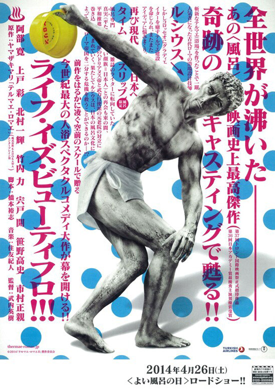 | 借りたDVDがいくつかあるので、その中から寝る前に気楽に観ることができる映画と言うことで、続編も観ておこうかなという気持ちで今夜はこの映画を観ました。正直言って、前作で感じたエピソードの面白さは感じませんでした。最初からルシウスが、テルマエ建設の要求に対してすぐに平たい顔の人間の世界へ行ってヒントを得て戻ってくる、ということが繰り返されるのですが、それでの面白さはちょっとマンネリで変化がないなぁと思いました。争いをすることなく平和に暮らすことをテルマエに委ねられるというのも、今回はちょっと安易に感じます。なんというか、面白いのはこんなところだろうと軽く観られて二匹目のどじょうを狙って作られている感じが強く伝わってきてしまいます。過去と現代の行き来も思い通りになりすぎて都合よくなっているところも気になりましたし、温泉観光映画のようなところもありました。二番煎じではなく、もう少しストーリーを練って変化させたほうが良かったのだろうなと感じる映画でした。 |