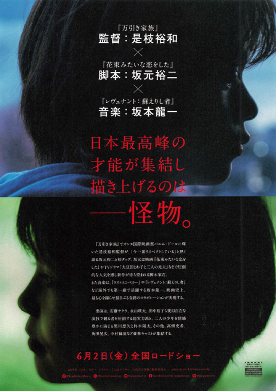この映画は、同じ時間を、母親の視点、担任教師の視点、子供の視点で順次描かれます。それを知らない母親の視点の時、学校の教師のイジメに対する対応がとても酷くて母親による教師と言う怪物との戦いかと思って少し気が重くなったのですが、次に最初から担任教師の視点で描かれるとその印象は一変します。怪物は教師を騙してイジメをしていた子供なのかと思ってしまいます。そして最後に子供たちの視点で描かれると、その光景はまた一変します。