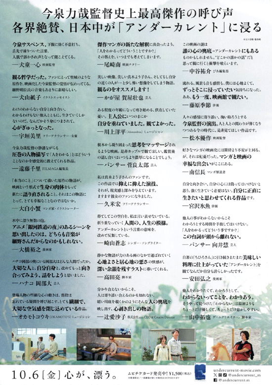 昨年に映画館で観たかったけれど観ることができなかった映画を今いくつか観ています。今日は、「アンダーカレント」を観ました。