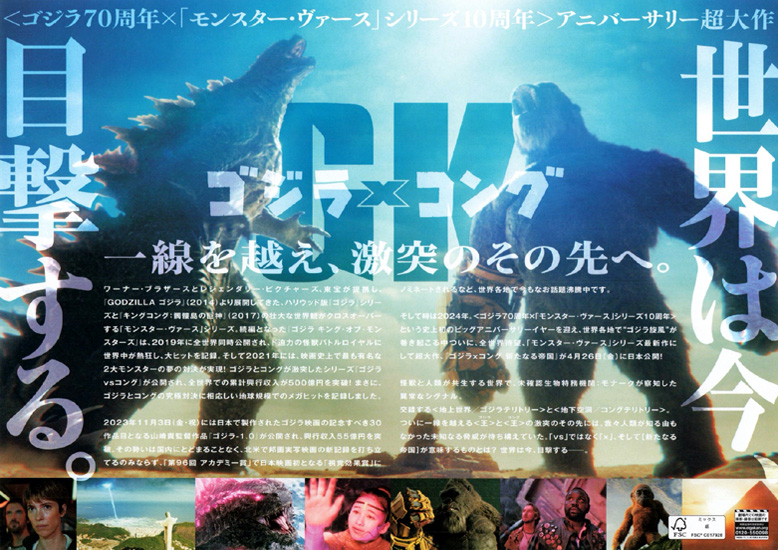 さすがにアメリカ映画、何があっても陽気で深刻さは無く、ストーリーのつじつまは大雑把、それでいて対決シーンは迫力満点の映画でした。タイトルは「ゴジラ×コング」となっていますが、主役は絶対的にコング。しかも人間的に、時には可愛らしく描かれています。ゴジラはコングほどの人間性は感じられませんが、ローマのコロッセオに猫のように丸まって眠るしぐさやコングやモスラとの目配せなどはコミカルに描かれています。
