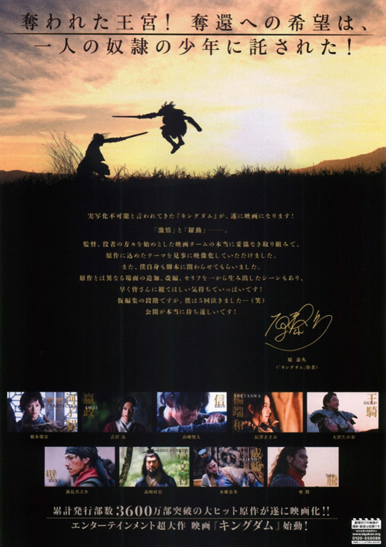 信:山崎賢人 / エイ政/漂:吉沢亮 / 楊端和:長澤まさみ / 河了貂:橋本環奈