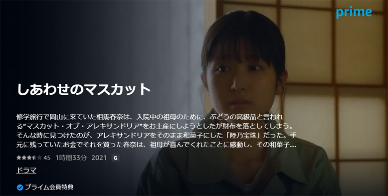 女子高生の春奈は、修学旅行で財布を無くし、祖母に約束した「マスカット・オブ・アレキサンドリア」を買えずにいた時に、「マスカット・オブ・アレキサンドリア」を使った和菓子に出会います。その美味しさに感動して、いつか自分もそんな和菓子を作りたいとその和菓子会社に就職しますが、新人研修でどこの部署でも失敗ばかりで、最後にはブドウ農家の手伝いに行かされます。ブドウ農家の秋吉には嫌われ、自分の夢を果たせない自分に自信を無くし苦悩しながらも、自分の道を見つけていくというストーリーです。