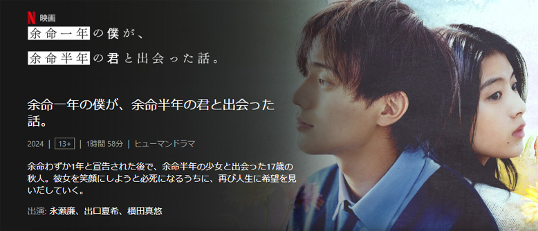 最初は、小説を読んで抱いていた秋人と春奈のイメージと、永瀬廉と出口夏希のイメージに違和感があって大丈夫かなと一瞬感じましたが、すぐに映画の世界に入り込むことができました。観終わった頃には、永瀬廉と出口夏希じゃないとダメだと思ってしまうほど、ふたりは素敵でした。小説では春奈と綾香が仲直りするところから泣きっぱなしでしたが、映画では、そのシーンよりも早い、ふたりが電話で話をしながら花火を観るシーンあたりから涙が溢れてきて、そのまま最後まで泣きっぱなしでした。ストーリーは単純なので、話の流れに無理や非現実感はまったくなく、秋人、春奈、綾香から伝わる、相手を思う優しさ、切ない恋心、命尽きることへの悲しみ、前向きに生きようとする思い、が素直に心に飛び込んできます。それぞれの感情に自分を置き換えることができて、映画の中の登場人物の嬉しさや悲しさが自分のことのように心に響いてきます。二人の運命に意外性は無く悲しい結末で終わるにもかかわらず、観たあとはとても心が温かく幸せな気持ちになって、誰かのために時間を使うことや、人生を輝かせることなどの大切さが心に広がります。