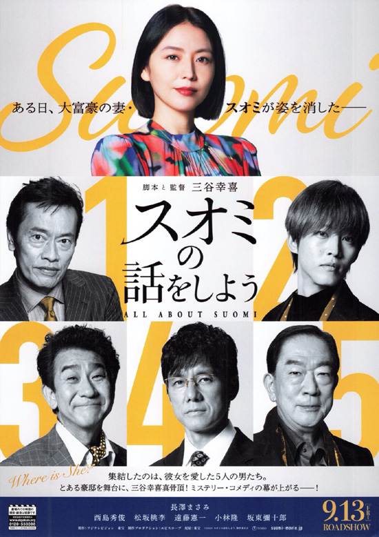 大富豪の妻・スオミが突然いなくなり、それを聞きつけた過去の夫を含む5人が夫の住む豪邸に集まります。それぞれがスオミについて語りますが、その話の中のスオミはまったくの別人のように異なります。そうした中、身代金3億円の要求があって、男たちはスオミを救出するために動く・・・というストーリーです。