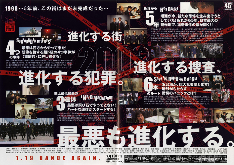 「踊る大捜査線 THE MOVIE 湾岸署史上最悪の3日間!」に引き続き、「踊る大捜査線 THE MOVIE2 レインボーブリッジを封鎖せよ!」を鑑賞しました。この映画は昨夜テレビ放映もされていました。