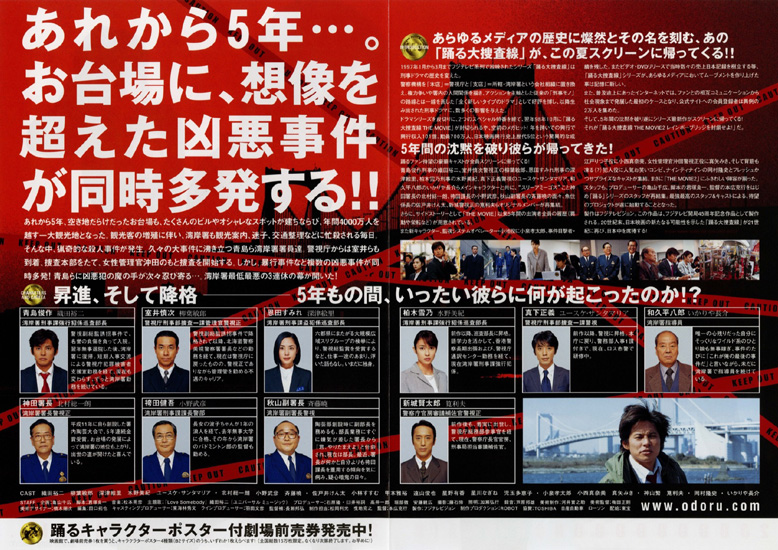 青島俊作:織田裕二 / 室井慎次:柳葉敏郎 / 恩田すみれ:深津絵里 / 柏木雪乃:水野美紀