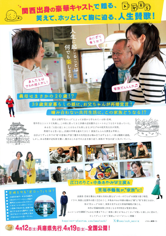 気楽なコメディーというつもりで観ましたが、途中から涙を流しながら観る羽目になってしまいました。優子のそっけなくも妊娠した早希のことが気にかかり、自分の結婚も素直に受け入れられなくて苦悩する心情。早希の家族に恵まれなかった生い立ちから、家族の団欒を大切にしてそれを幸せに感じる健気さ。竜太郎の「人生に起きることはなんでも楽しまなきゃ」という生き方の背景にある阪神・淡路大震災での悲しい出来事。それぞれが家族を大切に思い、理解しあっていく姿にとても心を打たれました。尼崎の水害を守る「あまろっく」のように、自分が家族を守る「あまろっく」になるという思い、災害で亡くなった人のためにも生き残った人間は楽しく生きなくては申し訳ないという思い、強く心に残りました。