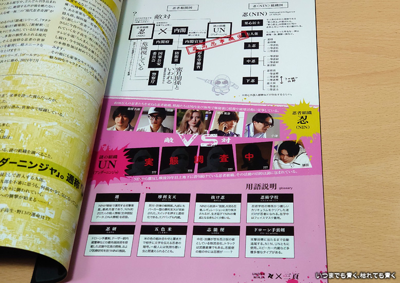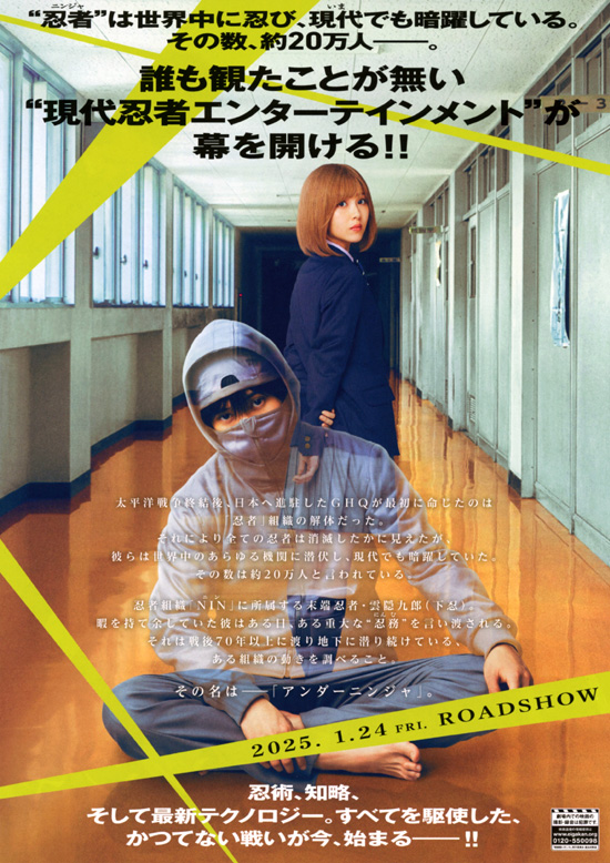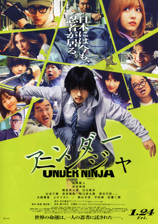 【あらすじ】 太平洋戦争後、忍者組織はGHQにより解体されたと思われていましたが、現在も警察や防衛省と関係を持ちながら忍者組織「NIN」として暗躍しています。しかし、その「NIN」から離れていったものたちを集めて「NIN」と敵対する忍者地下組織「アンダーニンジャ・UN」が不穏な動きを見せています。「NIN」の末端として暇を持て余していた忍者・雲隠九郎(山崎賢人)は、「UN」の調査という重要任務を与えられ、生徒として講談高校に潜り込み・・・ |