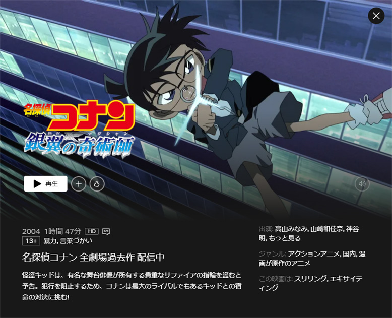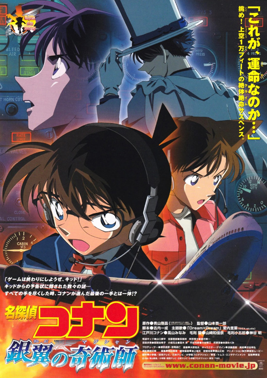 新一と怪盗キッドの友情、新一と蘭のラブストーリーが中心に描かれた作品で、操縦士を失った飛行機を無事に着陸させるかというところが大きな見どころとなります。怪盗キッドの盗難予告が主体なので派手な殺人は無くて、スタッフによる牧ひとりだけの殺人事件ですが、それは飛行機の難局のきっかけという位置づけが強かったです。ただ、犯人解明の謎解きは単純ではなく、初めて妃英理が眠らされての探偵役を担っており、解明するのは新鮮で面白かったです。