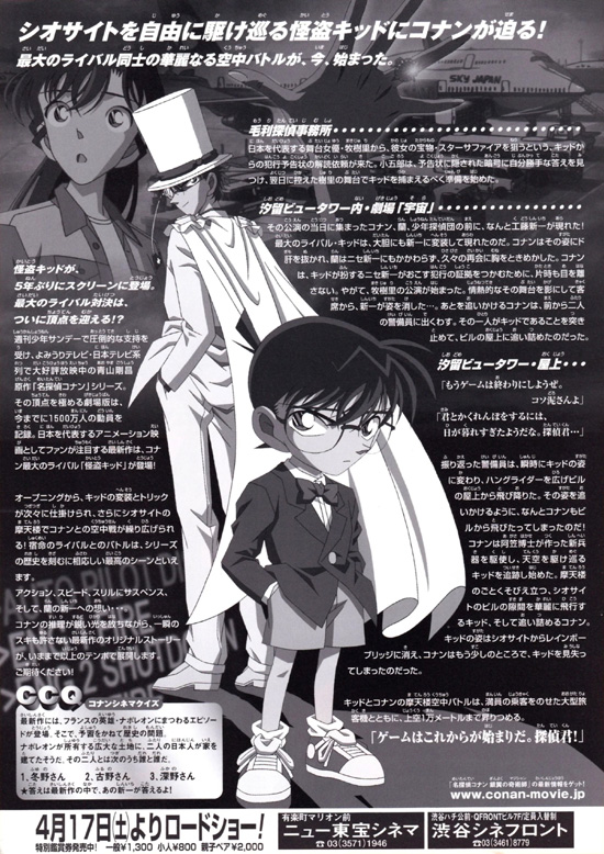 緊迫した状況の中、コナン(新一)と怪盗キッドが相手を信頼して助け合ったり、切迫した場面で新一に蘭が告白してしまったり、微笑ましく清々しいシーンは、とても心が和んで良かったです。 |