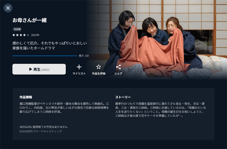 | 2025年5月24日(土)鑑賞 U-NEXT |