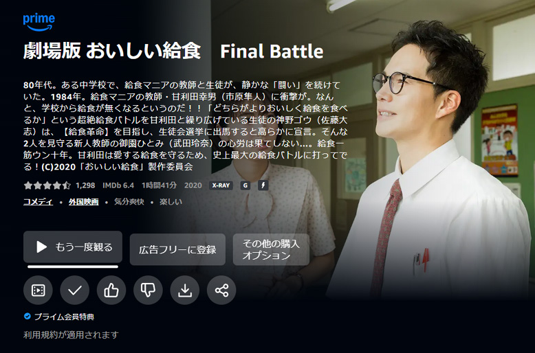 「おいしい給食」はテレビドラマも観ていましたし、劇場版も第2弾の「劇場版