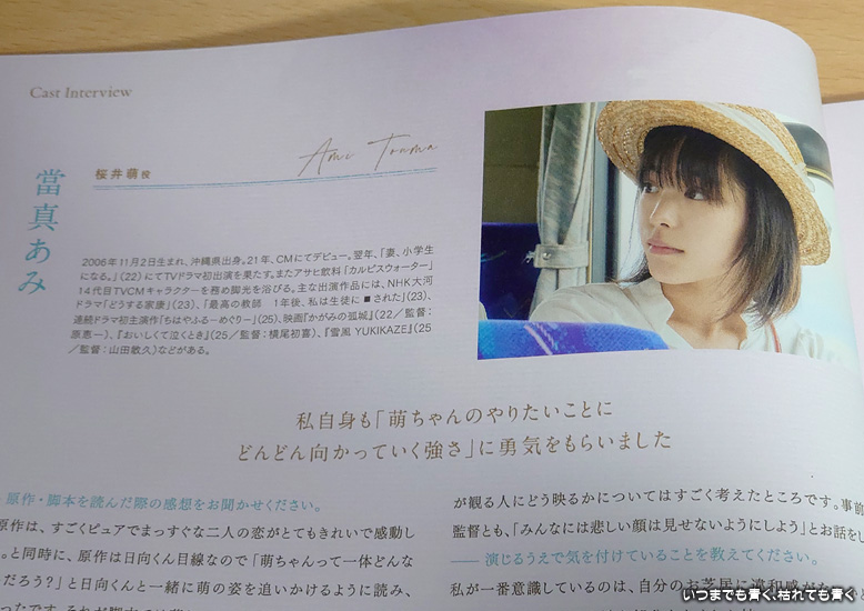 萌役の當真あみ、日向役の齋藤潤、麗役の池端杏慈は、自然で高校生らしくとてもうまく演じていて、切なく悲しい関係をよく表現していました。しかし、気になるところがいくつかあって、私好みの泣けるストーリでありながら思っていたほど物語に入り込めなくて、全体で泣けるような感じではありませんでした。