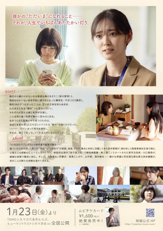 結論から言うと、久しぶりの大当たりの映画でした。テーマや伝えたいことはストレートでわかりやすかったですし、鈴木愛理が、過去のイジメを引きずる教師役でトラウマに悩みながらも強さと脆さが同居するえりこを、とても素敵に演じていました。また、川口真奈も、本当の自分を見失い不登校になった千花の苦しい心情をよく表現していました。高畑充希に似た可愛い子です。
