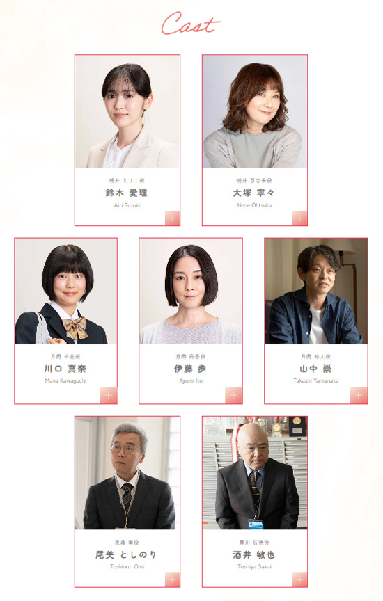 朝井えりこ:鈴木愛理 / 月岡千花:川口真奈 / 月岡円香:伊藤歩 / 月岡裕人:山中崇 /