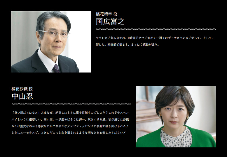 「2時間サスペンス THE MOVIE シリーズ」としてせっかく作るのならば、真面目で重厚な2時間サスペンスドラマを期待したかったです。『「2時間サスペンス」をモチーフにした』程度の感じで、パロディに振りきるわけでもなく、中途半端な感じがぬぐえない出来でした。