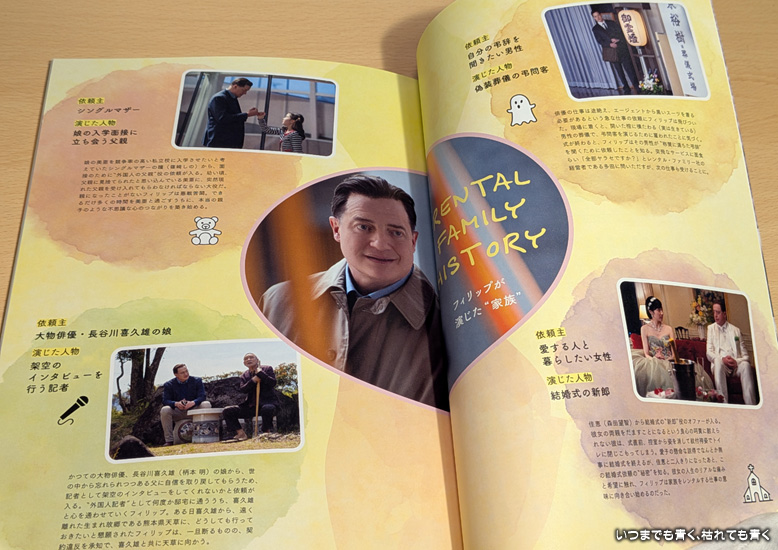 かつて歯磨き粉のCMで一世を風靡したものの、近頃は世間から忘れ去られつつあるアメリカ人俳優フィリップ(ブレンダン・フレイザー)。俳優業を細々と続けながら東京で暮らし、すっかり街になじんでいた。そんなある日、フィリップはレンタル・ファミリー会社を経営する多田(平岳大)から仕事を依頼される。レンタル・ファミリーとは、依頼人にとって大切な「家族」のような役割を演じることで報酬を得る仕事。最初のうちは、他人の人生に深く関わることに戸惑うフィリップだったが、仕事を通して出会った人々と交流していくうちに、いつしか彼自身の心にも変化が起こりはじめる・・・ |