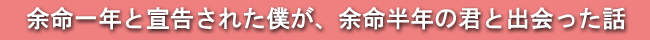 心臓病で余命一年を宣告され生きる気力を無くしていた高校生の早坂秋人は、通院先の病院で、絵を描く同年代の少女、桜井春奈と出会います。春奈もまた重病で余命半年と言われており、そのことを秋人に告げます。ふたりはお互い話をし恋をすることで生きる希望を見出していくというストーリーです。