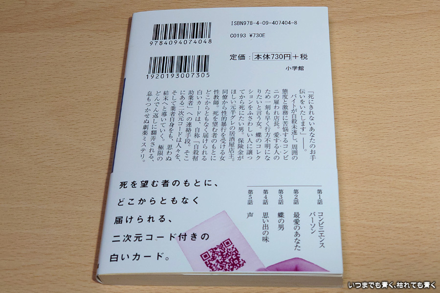 自殺を考えている人の前に2次元コードが書かれた名刺大の紙が届けられます。その2次元コードでアクセスできるサイトは、自殺幇助業者「有限会社さんず」。自殺幇助を申し込むとやってくるのはスガとカトウという2人組。ふたりと5人の自殺希望者の物語が展開されます。