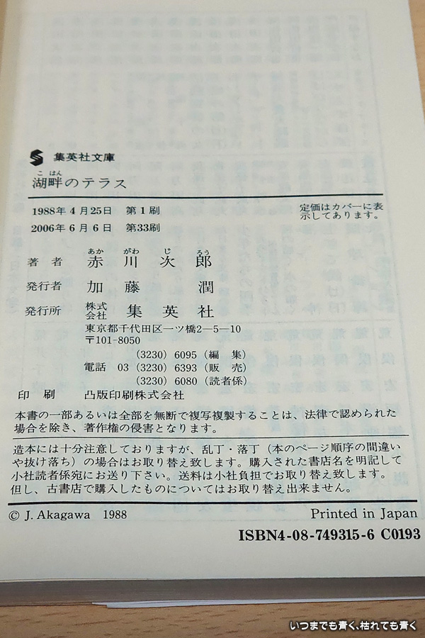 「湖畔のテラス」は、6編のミステリー短編集です。ホラー的なものもあったり、ホロっとさせてくれるものがあったり、それぞれが魅力的です。それぞれの終わり方が明確に結果を明示していないのが、余韻を残したままで読み手の想像力に任されているような気がします。電話は固定電話と公衆電話しか出てこないので、そこは時代を感じさせます。