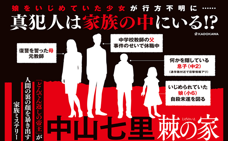 イジメの加害者・大輪彩を殺した犯人はいったい誰なのか、信じられなくなっていく穂刈家はどうなるのか、最後まで興味深く楽しめる作品でした。合わせて、「学校という組織の中でのイジメ問題に対する対応」、「ネット社会での匿名による行き過ぎた攻撃」、「そもそものイジメ問題の本質」などの問題をしっかりと描かれており、共感する部分も多かったです。自分自身も、娘へのいじめ問題で、イジメをしていた子供の親に文句を言った時の相手の反応や、学校の先生と話し合った時に理屈や正論がまったく通じなかったもどかしい思いや怒りを思い出してしまいました。また、ネットで叩かれるということも少し経験しているので、マスコミやネットの無責任な正義感への嫌悪感も感じてしまいました。