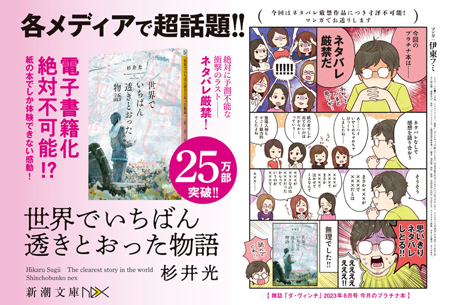 そして、最後にその小説は誰のためだったのかがわかり、透き通っているという意味も明らかになります。それはまったくの予想外の展開で、たぶん読者は一人として予想できなかったのではないかと思うくらい意外性のある結末でした。この小説自体が、宮内彰吾のアイデアで書かれた「世界でいちばん透きとおった物語」であったわけです。