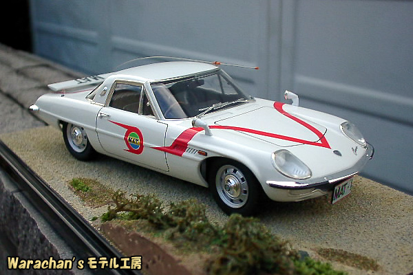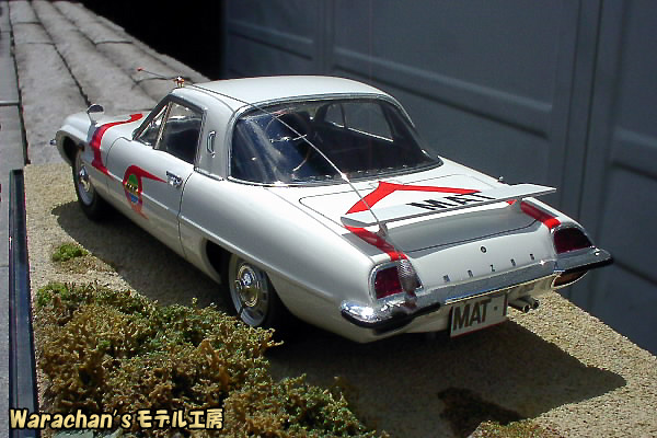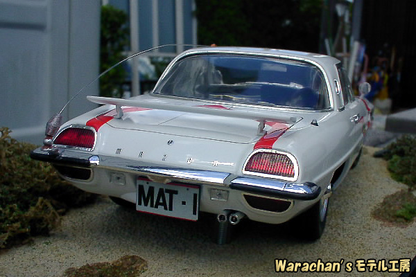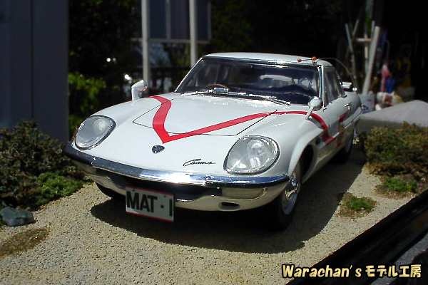 リアクオータあたりの曲面がなんともセクシーで魅力的であり、あらためてベース車であるコスモスポーツの美しさを認識しました。そのうち、コスモスポーツのノーマル仕様も作ろうかなと思っています。なお、ノーマルで組むときも、キットはマットビハイクルのキットを買った方が得です。ノーマル仕様の部品もはいって価格はほぼ同じですから。それになんといっても、キットが新しいです。 |