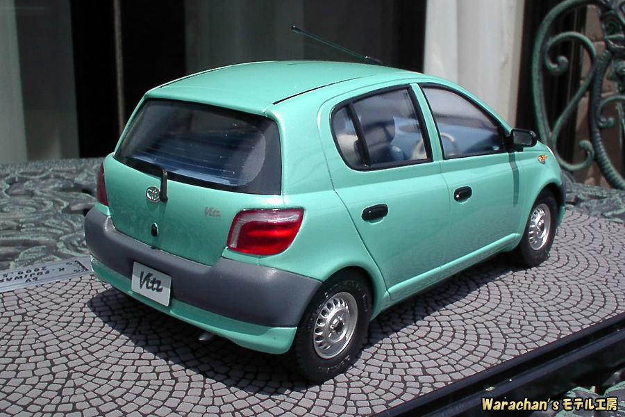ヴィッツはCAR-25に続き2台目ですが、内装色も異なり、グレードをBとしたことで外装の塗り分けが増え(低グレード車は黒やグレイ部分が多い)、結構手間がかかってしまいました。ヘッドライトレンズ、フロントグリルはそのままではうまくあいませんので、しっかりあわせをしておく必要があります。