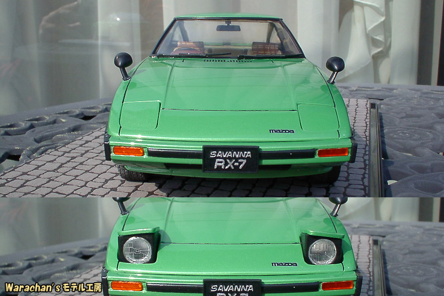 フロントのウインドウガラスのみ、再販のマイナーチェンジ後のキットのものを使っています。