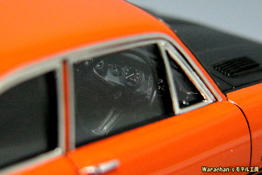 特に、前後のウィンドウモールは、基本的には黒いゴムでガラスを支え、その上にメッキモールがはめ込まれている仕様になっていますので、その表現をどうするかにいろいろと頭を悩ませました。