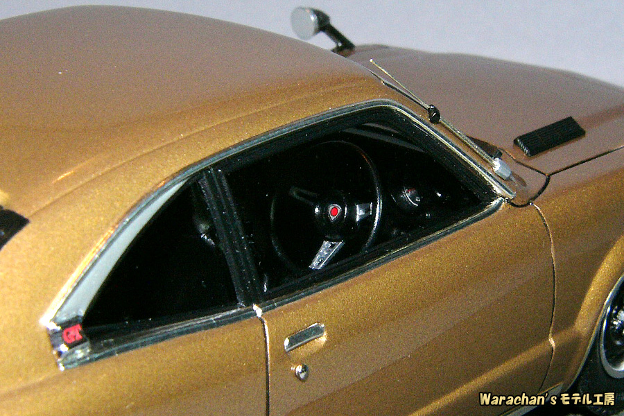 ボディカラーは、箱絵のクルマをイメージに、#9ゴールドをベースに#8のカッパーと少々の白を混ぜたものです。