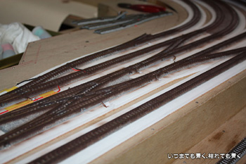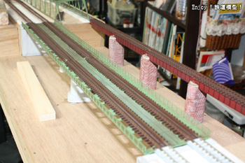 さて、この鉄橋を固定してしまえば、最外周の貨物線の線路敷設が進むことになります。 |