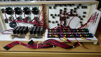 ひとつのトグルスイッチにはこれだけの配線をする必要があります。作業はまだまだ続きます。この土日の作業はここまでとなります。 |