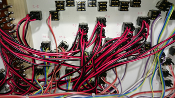 走行用電源供給トグルスイッチとポイント切換用トグルスイッチの配線の仕上がり状況です。 |