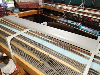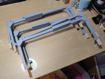 高架線路盤のサーフェサー塗りがやっと終わりました。