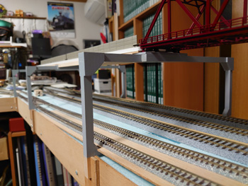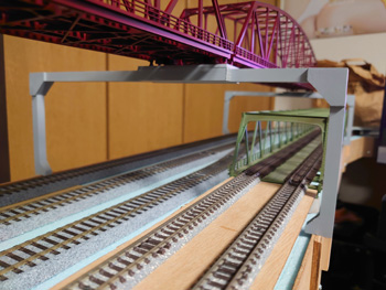 高架線路盤を灰色9号に塗装して橋脚に固定しました。 |