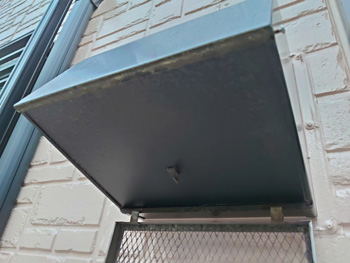 | 塗装時に噴霧した塗料が換気扇に吸い込まれずに戻ってくるような感じがしていました。おかしいなと思ってはいましたが、換気扇は回っているし、構造も簡単なので、換気扇に問題があるなんてことはまったく考えていませんでした。たまたま今日、外に出た時に換気扇をつけたままにしているのに換気扇フードから風が出ていないことに気づいて、下から覗いてみたら、空気の出口全体に鉄板が降りていて完全に閉じられていました。鉄板は、通常はバネで上に上げて固定されているようですが、バネが外れて下に降りてしまっていました。何かを感知して自動的に閉まるものなのか、誰かが故意に降ろしたのか、いつからこうなっていたのか、よくわかりませんが、ここが閉じていたということは、最近の塗装は閉め切った部屋の中に有機成分をまき散らしていたことになり、健康上とても危険な状態だったということになります。たまたま今日偶然に見つけることができましたが、そうでなければ、おかしいなと思いながらもそのまま使っていた可能性もありました。おかしいなと思ったらすぐに調べないとダメですね。 |
