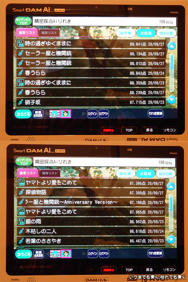 | 点数上位8曲のみ。 |