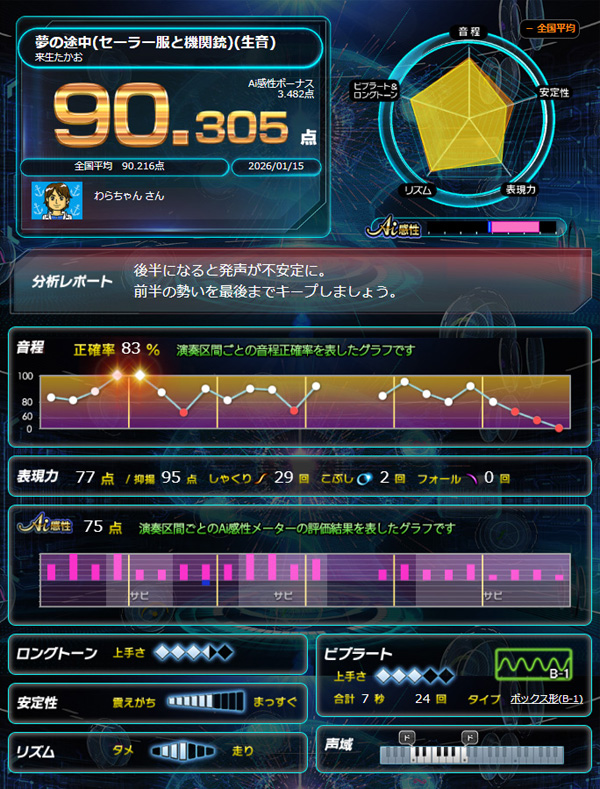 13 2026/1/15 12:19 北ウイング(生音) 中森明菜 86.801点 9